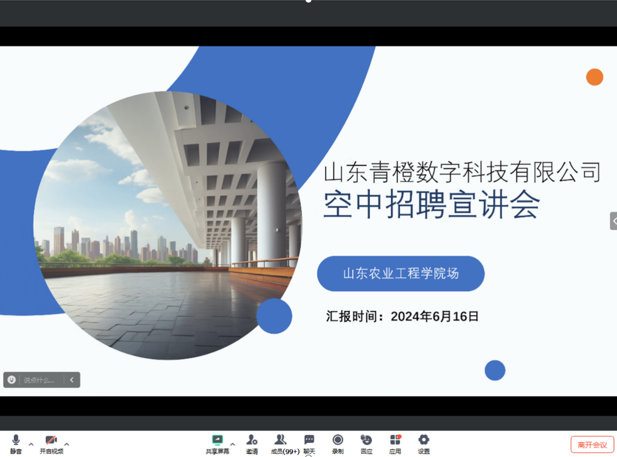 2024年6月16日信息科学与工程学院携手山东青橙数字科技有限公司,成功举办了一场别开生面的空中宣讲会。此次宣讲会通过线上平台,为学院师生搭建了一个深入了解行业前沿、探索职业发展路径的宝贵平台。