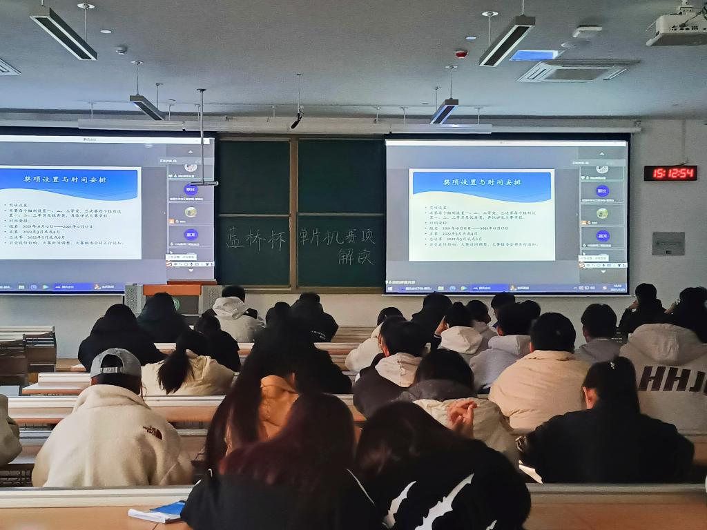 为了帮助学生扩宽技术视野、紧跟时代发展,提高学生的创新实践能力,促使学生更深入的了解蓝桥杯-单片机赛事,信息科学与工程学院于2021年12月5日淄共北楼A205召开了关于蓝桥杯-单片机赛事的解读。本次讲座由校企合作单位聘请的对蓝桥杯-单片机赛事有相关经验的技术人讲解,主要通过线上方式进行赛事的分享与解读。