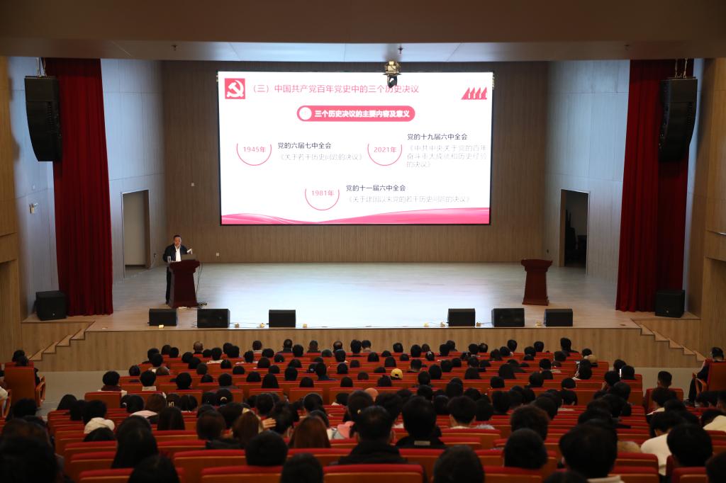 会上校党委书记丁希滨带领大家集中学习了党的十九届六中全会精神。第一部分是十九届六中全会召开的背景。十九届六中全会是开启全面建设社会主义现代化国家新征程、在新时代坚持和发展中国特色社会主义的客观需要,是实现中华民族伟大复兴的中国梦而继续奋斗的迫切需要。第二部分是《中共中央关于党的百年奋斗重大成就和历史经验的决议》的主要内容。该部分从党百年奋斗的重大成就、历史意义、历史经验三个层面进行了分析与阐述。百年奋斗之路波澜壮阔,辗转前行,但中国共产党为人民服务的初心历久弥坚,带领人民谱写了一曲气壮山河的奋斗赞歌。第三部分是党的十九届六中全会的重要意义。一是党的十九届六中全会是党在重要历史关头召开的一次具有重大历史意义的会议。二是全会强调了“两个确立”,对新时代党和国家事业发展、对推进中华民族伟大复兴历史进程具有决定性意义。三是全会对习近平新时代中国特色社会主义思想的概括和阐述,是《决议》的突出亮点和重大贡献。