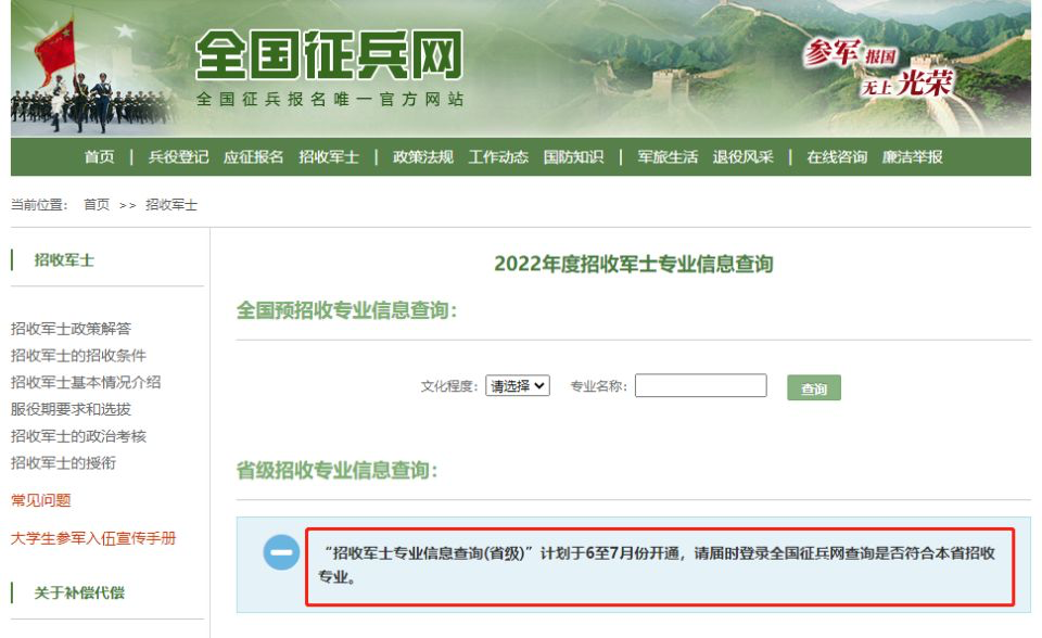 招收军士的网上预报名通道