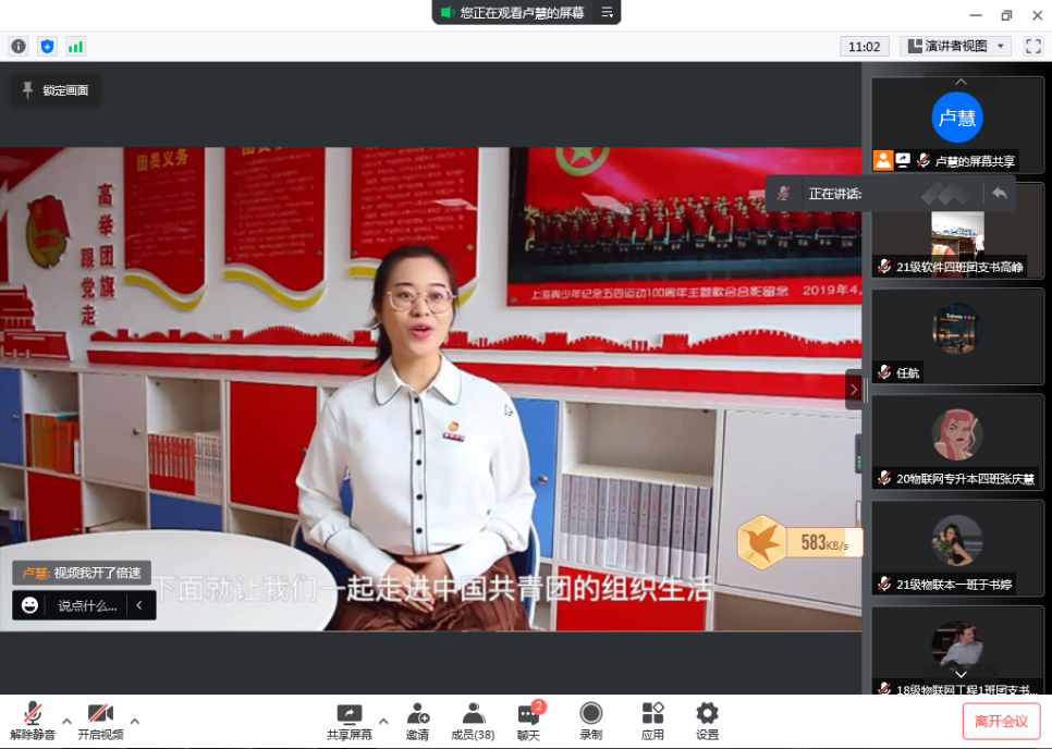 例会主要内容有以下三项内容。一是学习习近平总书记关于青年工作的重要思想并结合《习近平和大学生朋友们》一书感悟党对青年学生寄予的厚望和时代赋予的光荣使命,并观看视频;二是团总支副书记卢慧总结前段时间团的各项工作,通报青年大学习学习情况;三是郭松明老师就近期团的各项工作进行部署安排,并鼓励各级团干部调整心态、增进信心,以正确的理想信念和价值取向面对共青团工作。