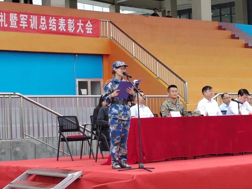 展示完毕后,领导老师们对各个连队优秀的学生提出表扬并为其颁奖。随后由信工学院学生代表王玉进行学生代表发言,她表示军训对新生身体与精神有着深远的影响,不仅锻炼了体魄,更淬炼了意志,为今后刻苦学习打下了坚实基础。学生代表发言完毕后,老师代表陈蒙蒙发言,新生的精神面貌值得表扬,看着新同学们斗志昂扬的面庞,相信他们可以克服一切困难,向未来奋力前进。最后党支部书记张鸿波做总结致辞,代表学校向军训期间辛勤工作的全体教官表示衷心的感谢,向顺利完成军训任务的全体同学表示热烈的祝贺。同时强调,训练场上严格规范、一丝不苟的训练要诀所激发出来的高昂斗志、进取精神,是大家获取动力的源泉,希望全体同学以本次军训为起点,把军人作风,带到今后的学习和生活中去。