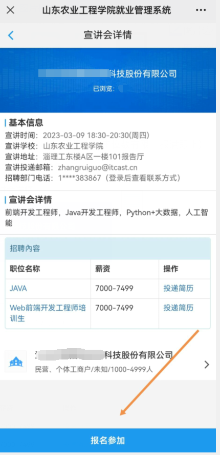 第四步:点击页面下方“报名参加”(因报告厅座位数有限,报满即止)