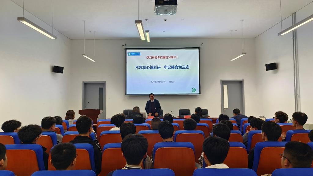 以棉杆为笔,以棉絮做白墨,土黄色的大地铺成宣纸,俯下身子把论文写在大地上,用几十年的汗水盖上自己独特的印章。俯下身子做实事,这便是陈洪章教授言传身教给我们的。通过陈洪章教授的分享,同学们明白了老一辈科研人员的艰苦,懂得了现在如今美好生活的来之不易。作为一所农科院校,我们不仅仅要独善其身,更要有俯下身子做实事的信念,勇攀科研之峰,愿下农桑之田,为解决三农问题尽自己的一份力量。