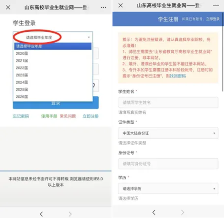 请注意:应选择毕业年度