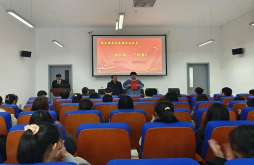 紧接着是省政府励志奖学金颁奖,由党总支副书记张兴波为获奖学生王友娟、贺晨、刘嘉怡、王文钰、高文婷颁奖。随后由团总支副书记夏天宇为济南励志奖学金获奖学生蔺心伟颁奖,辅导员赵晓芳为校长奖学金获得学生纪帆、苗逸暄颁奖。所有的获奖学生都彰显出来榜样的力量,绽放熠熠生辉的光彩。