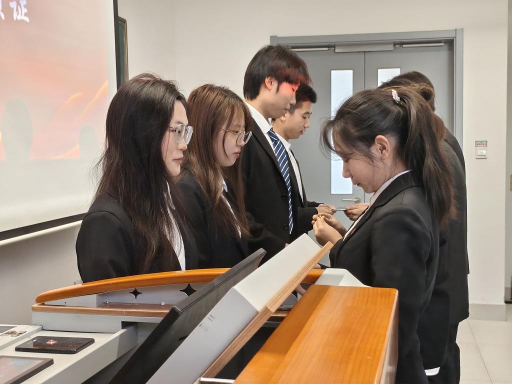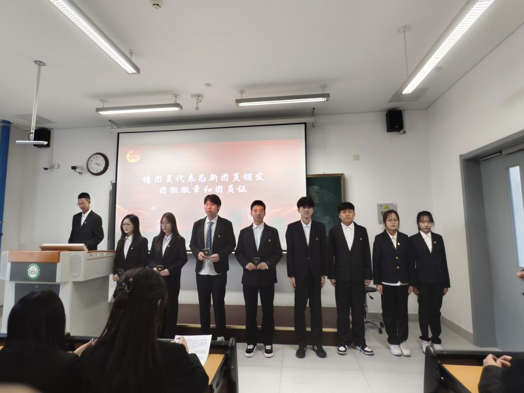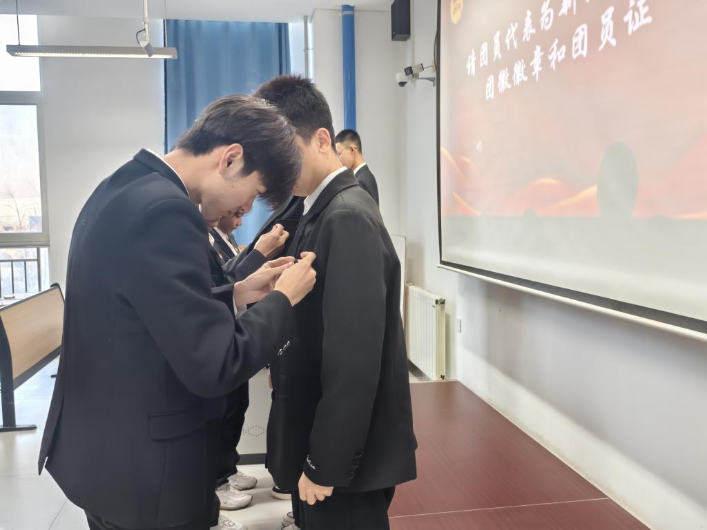 在颁发礼环节,党员代表和团组织负责人将团徽和团员证郑重地交到新团员手中。这一过程象征着责任的传递,团徽不仅是身份的象征,更是一份沉甸甸的责任,提醒着新团员们要时刻铭记自己的使命,在学习和生活中发挥模范带头作用,践行社会主义核心价值观。