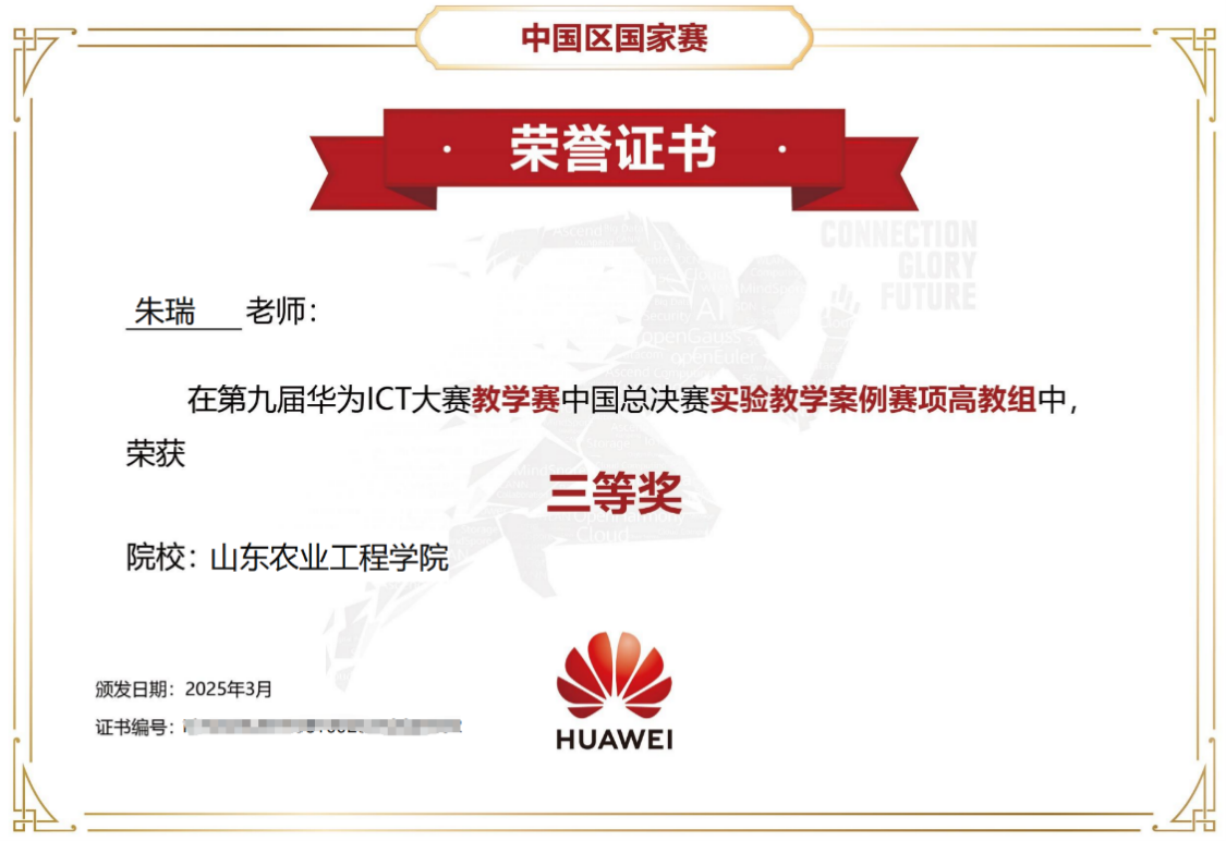 3月9日,第九届华为ICT大赛教学赛全国总决赛在杭州华为全球培训中心落下帷幕。必赢信息科学与工程学院教师团队的《农业病虫害数据分析与预测》项目经过作品初赛、决赛答辩、总决赛现场答辩等环节,荣获实验教学案例赛项三等奖。
