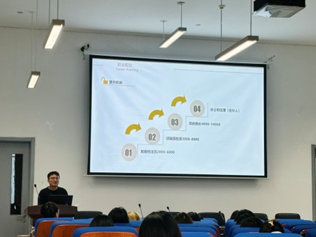 招聘会现场,企业详细介绍了“人工智能训练师”岗位的职责与前景。该岗位以“青年人才储备计划”为导向,聚焦“人工智能训练师”岗位的成长性与创新性,为同学们展示了此职业的重要性及意义。同时为同学们仔细讲解了晋升通道,能够为职场新人提供长期成长空间。