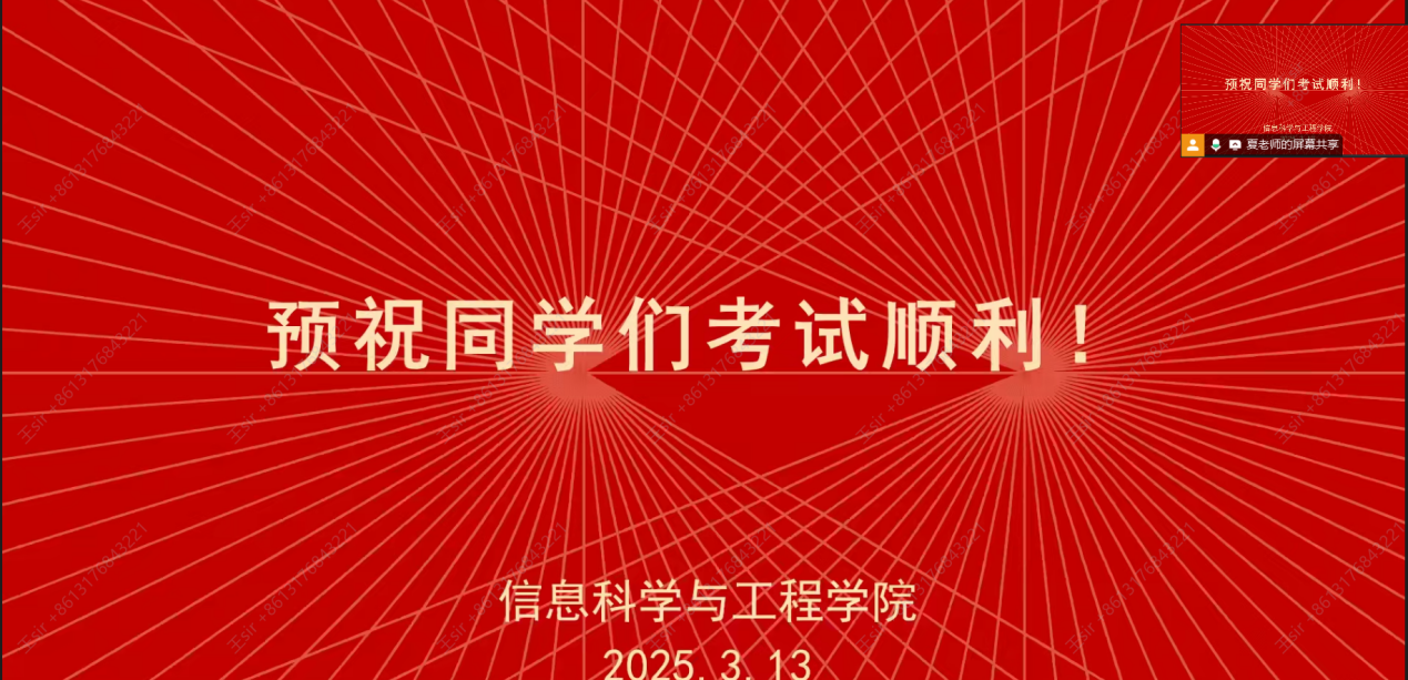 临近会议尾声,夏老师为同学们提供了复习的三个“法宝锦囊”:抓大放小、模拟实战、心理调适。希望这些经验可以帮助到同学们冲刺复习。在会议的末尾,夏老师为同学们加油鼓气。努力今朝,收获明朝。“长风破浪会有时,直挂云帆济沧海”夏老师的句句嘱托,深深烙印在学生们的心上,成为他们冲刺的一股动力。经过此次会议,不仅帮助即将奔赴考场的同学们梳理清了备考思路,有效提升了复习效率,更点燃了大家的斗志。希望同学们以更昂扬、更饱满的状态迎接考试。会议圆满结束,信息科学与工程学院在此预祝各位考生金榜题名,成功上岸!