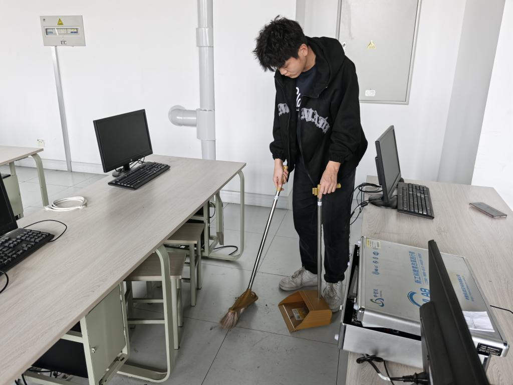 春风拂面的校园里,处处跃动着青春的风景线。活动现场,志愿者们以饱满的热情投入校园环境提升工作。他们分成三组,各自奔赴指定区域。负责校园公共区域的志愿者们,认真清扫每一处角落,不放过任何一片垃圾。在教学楼教室,志愿者们仔细擦拭黑板、桌椅,清扫地面,将教室整理得井井有条。而在机房,志愿者在清理地面卫生的同时,还对设备线路进行了整理。大家相互配合,默契十足,认真完成每一项清洁任务。三组成员通过协同配合,高效完成了各区域的环境优化任务。