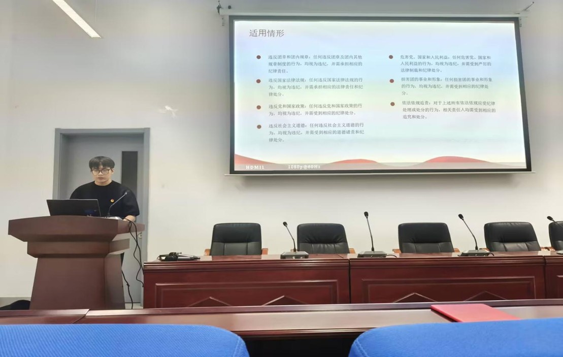 在团课核心环节,亓英豪对《中国共产主义青年团纪律处分条例》展开深度剖析。他强调,该条例是共青团永葆先进性、净化团内政治生态的“利器”。随后,他逐一对政治纪律、组织纪律等六大纪律体系的内涵、具体要求进行解读,