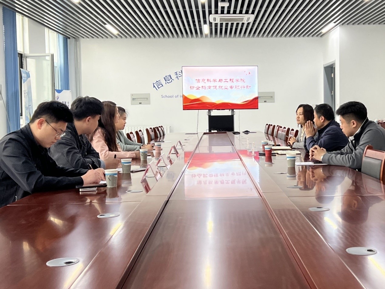 为深入贯彻落实党中央、国务院关于高校毕业生就业工作的决策部署,积极响应教育部办公厅《关于开展全国高校书记校长访企拓岗促就业专项行动的通知》精神,助力高校毕业生实现高质量就业,校党委副书记张业赏、信工学院院长杨现德多方联系、走访行业领域相关企业,邀请企业代表来校交流座谈。 2023年4月15日,信息科学与工程学院在理工东A310会议室成功举办信工学院访企拓岗促就业专项行动座谈会。出席本次座谈会的有信息科学与工程学院党总支副书记孙向群、副院长黄芳、学院创新创业与就业工作指导教师夏天宇以及各来访企业代表。