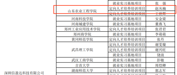 近日,教育部高校学生司发布《教育部高校学生司关于公布第二期供需对接就业育人项目立项名单的通知》(教学司函[2023]6号),我与深信服科技股份有限公司济南博赛网络技术有限公司和北京华清远见科技发展有限公司联合申报的就业实习基地项目与深圳信盈达科技有限公司公司联合申报定向人才培养培训项目,共4个项目获批立项。