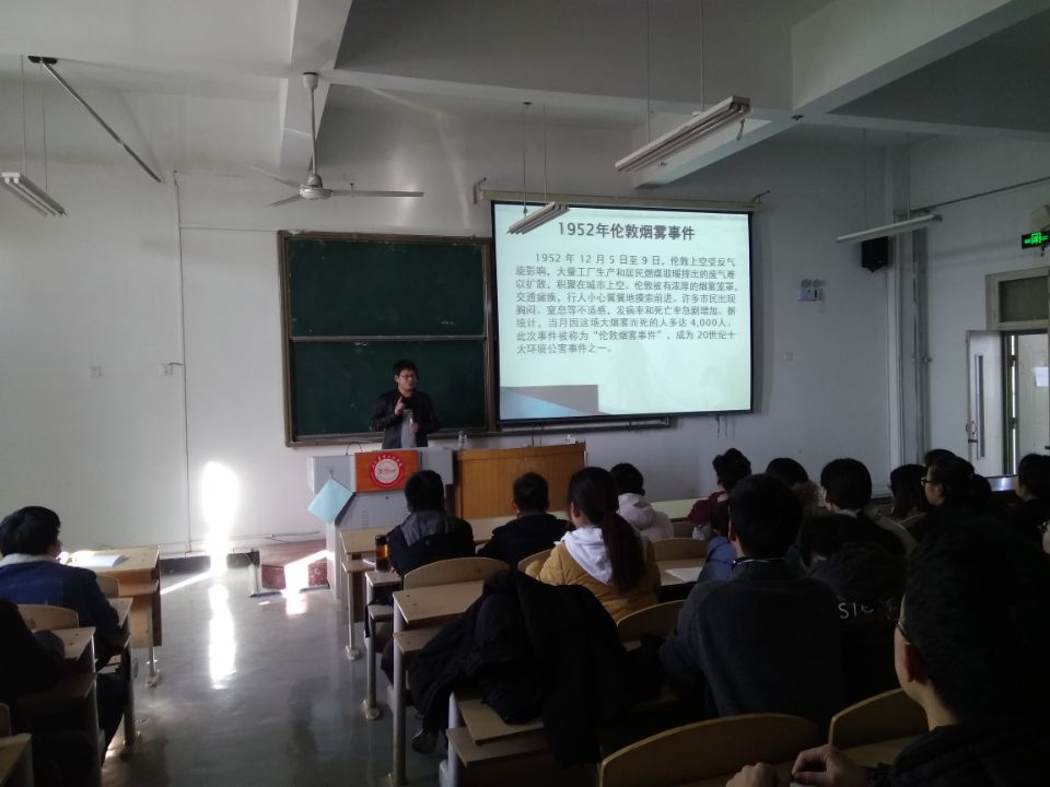 本次活动由信息科学与工程学院承办,很荣幸地邀请到了南宁师范大学刘书田博士进行专业的讲解。此次讲座中,刘书田老师让同学们对PM2.5有了基本的了解,然后为大家介绍了PM2.5产生的原因、对人体的危害,以及预防的措施。讲座中引入了大量的数据、照片,生动形象。同学们在讲座中听讲认真,积极配合老师工作,整个讲座的气氛也比较轻松。