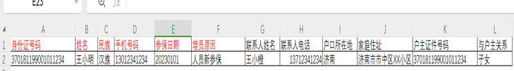 注意:医保报盘文件填写示例如下: