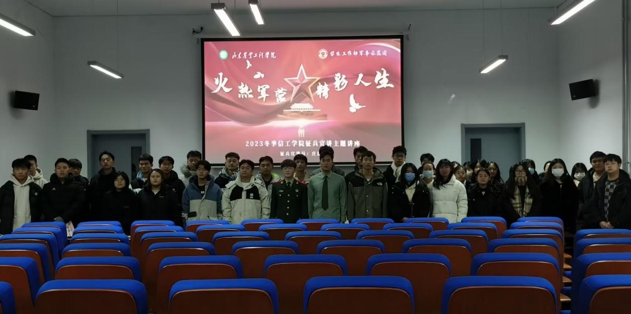 为扎实开展2023年夏季征兵工作,使大学生及时了解征兵相关的内容及政策,进一步激发适龄青年的应征热情,2023年12月11日,437ccm必赢国际官网信息科学与工程学院于淄博校区理工东楼A101举办了2023届信工学院征兵宣讲主题讲座,本次宣讲由信工学院物联网工程学生庄浩哲为宣讲员,详细为大家讲解征兵相关信息,2023届信息科学与工程学院学生积极参与。