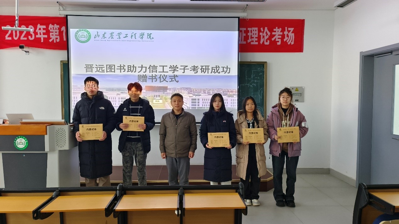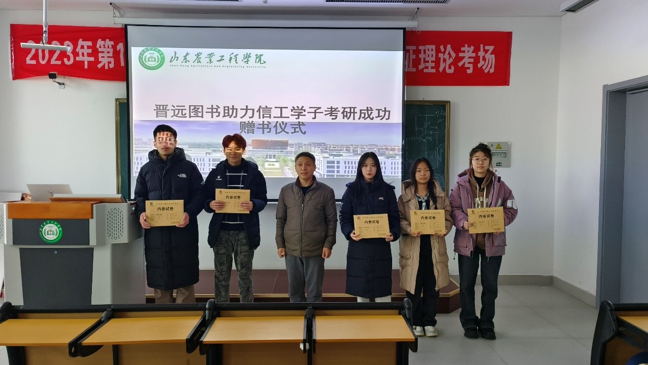 为了帮助信息科学与工程学院考研学子在考试中取得优异成绩,同时展现我院对研究生考试的重视,加强晋远图书和社会之间的联系,促进教育事业的发展。2023年12月11日下午14点,“晋远图书助力信工学子考研成功赠书仪式”活动在理工东楼A312顺利举行。