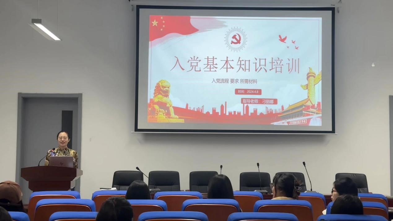 培训伊始,由学生第一党支部书记刁丽娜发表致辞,刁老师强调入党基础教育是每一位入党积极分子必须经历的重要阶段。它不仅是学习党的基本理论知识的过程,更是锤炼党性、坚定信仰、提高政治觉悟的过程。通过入党基础教育,能够更加深刻地理解党的性质、宗旨和任务,明确党的责任和使命,为成为一名合格的共产党员打下坚实的基础。