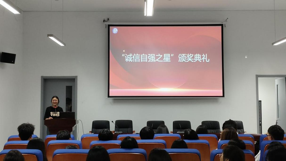 榜样力量:分享交流诚信自强之路。为了进一步强化诚信自强之风,鼓励同学们向“诚信自强之星”学习,在活动的最后阶段,我院组织了一场别开生面的分享交流会暨表彰大会。五位“诚信自强之星”代表以生动的语言和丰富的事迹,分享了自己在诚信与自强方面的心得体会。他们纷纷表示,诚信和自强是人生的两大支柱,只有坚守诚信底线、不断自强不息,才能在人生的道路上走得更远。分享会最后,我院评审小组辅导员代表赵丛楠为获评“诚信自强之星”的同学颁发荣誉证书,表彰他们在学习、生活等方面的优秀表现。辅导员李洁璐做最后总结,她表示,“诚信自强之星”获得者们以自己的实际行动,彰显了诚信和自强的力量,为同学们树立了光辉的榜样。同时也为同学们提出希望,愿每一位同学都能秉持初心,走好自己的诚信自强之路。