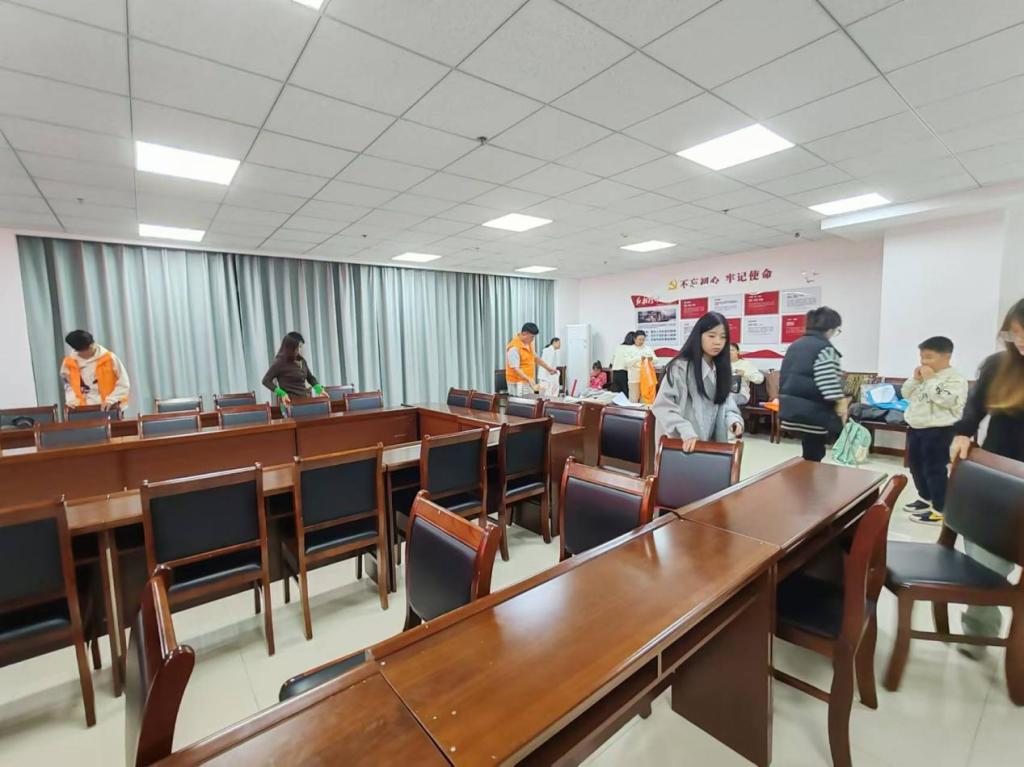 活动当日,大学生志愿者提前在现场准备,负责引导的同学在门口等待迎接。随后志愿者们开始整理会场,确保桌椅整齐。本次活动还特别为孩子们准备了小零食,让孩子在阅读间隙享美味,沉浸在温馨氛围中。