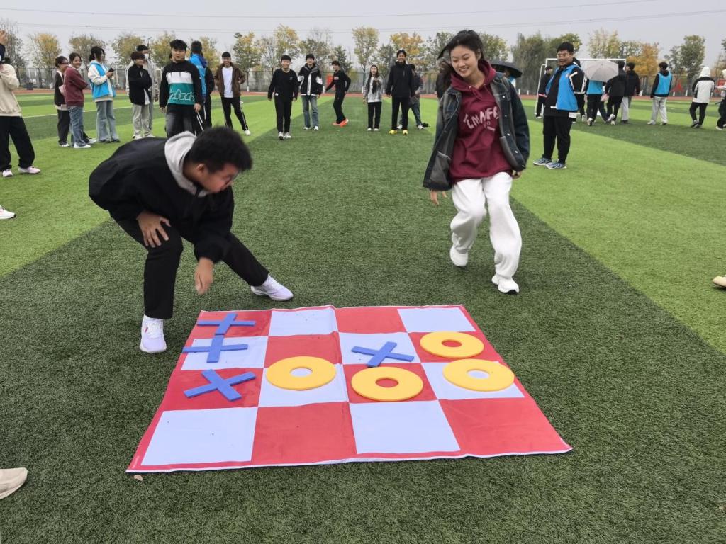 在五项竞技项目活动进行的过程中,以各班级为单位的活动人员进行了两两班级对抗形式的趣味活动。赛场上的同学们个个都全神贯注、有条不紊的进行着比赛。在极速三子棋大战中,同学们奋力向前奔跑,忘却烦恼踌躇,进行着一场速度与智慧的角逐,每一次的落子都是大脑飞速运转的结果,无论成功与否,都能听见场上人们的欢呼声,队友之间的相互激励。各班级内部团结一致,积极认真,展现出班级风采,青年意志。这些活动不仅考验同学们的观察力和判断力,还让同学们在轻松愉快的氛围中增进了彼此的信任和了解。