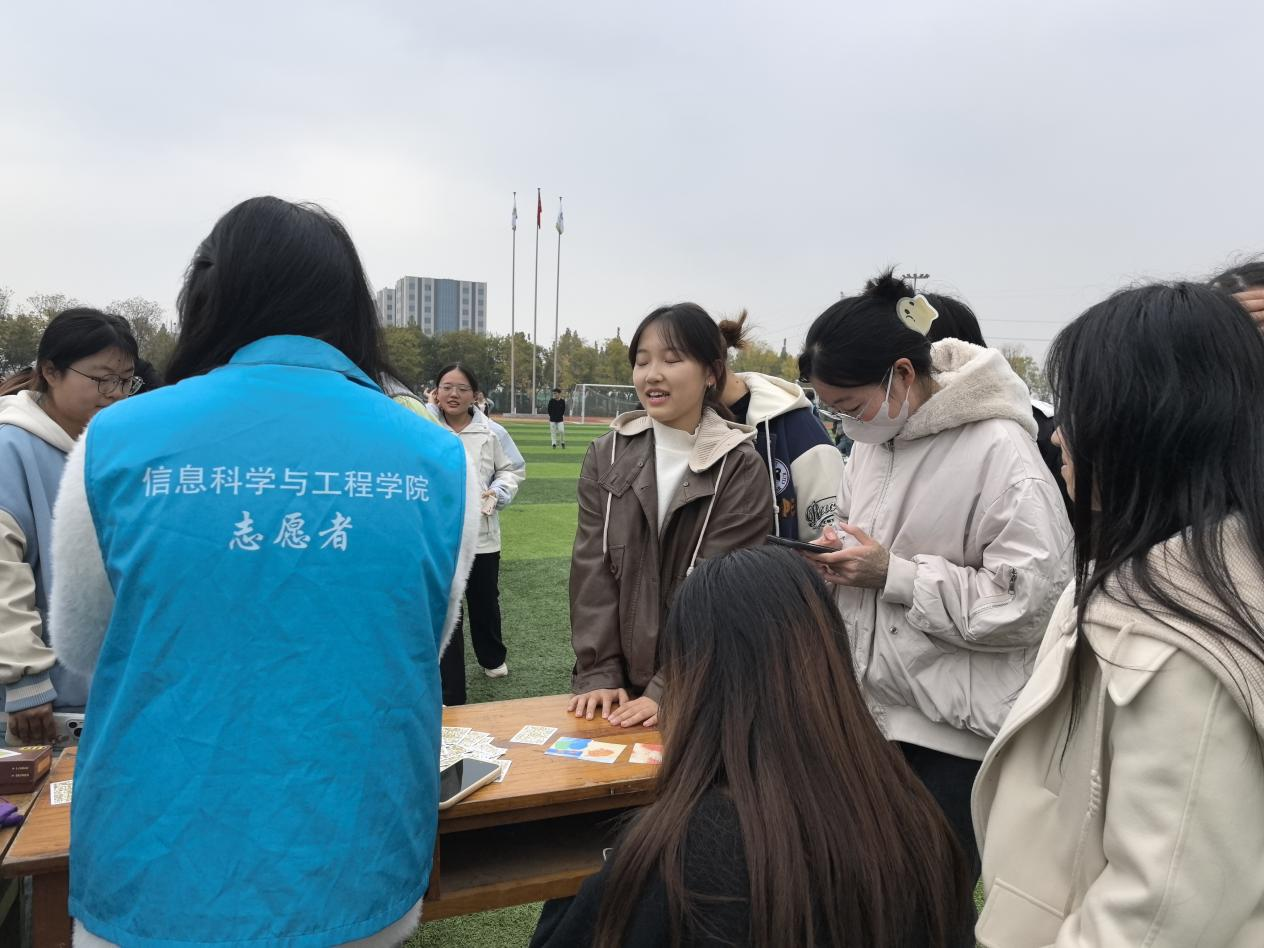 为了提高大学生的心理健康意识,培育学生自尊自信、理性平和的健康心态,促进学生身心健康的发展,信息科学与工程学院团总支学生会在2024年11月10日于东操场开展了以“信心相印,心驰神往”为主题的心里趣味运动会。