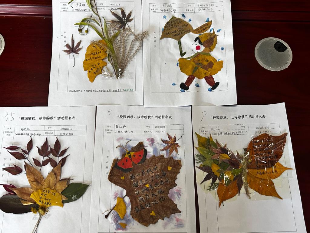 本次活动面向信息科学与工程学院全体学生展开,内容极具趣味性和创造性。同学们积极响应,纷纷投身于校园的秋日怀抱中,寻找灵感源泉。他们漫步在校园小径,将自己对秋天的感悟与思考化作优美的原创诗句,精心书写于叶面上,并进行巧妙的美化创作。每一片秋叶都仿佛成为了同学们情感与才情的寄托,承载着他们对这个季节独特的理解与表达。