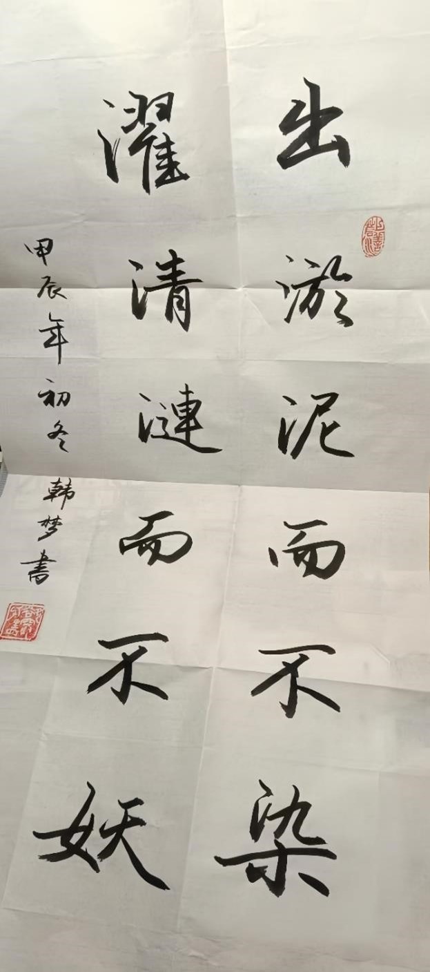 信工学院党总支高度重视、积极谋划,发布征集令后迅速得到全院学子踊跃参与。大家紧扣廉洁主题,充分挖掘“青绿”象征的纯净、质朴、守正寓意,各展才华。学生以墨香沁润廉洁情怀,书法作品行云流水、笔力苍劲;学生运用“廉”的同音字,提取莲花的线条轮廓进行巧妙组合和再创作,用剪刀和纸张讲述清廉的故事,展现了清风正气的力量。