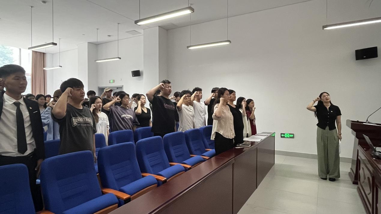 最后,大会进入庄重环节——党员宣誓。在学生第二党支部书记赵丛楠的领誓下,党员们面向党旗,右手握拳,高举过肩,用铿锵有力的声音宣读了入党誓词:“我志愿加入中国共产党,拥护党的纲领,遵守党的章程,履行党员义务,执行党的决定,严守党的纪律,保守党的秘密,对党忠诚,积极工作,为共产主义奋斗终身,随时准备为党和人民牺牲一切,永不叛党。”这一庄严的仪式不仅是对新党员们身份的转变的确认,更是对他们未来继续发挥党员先锋模范作用的期许。