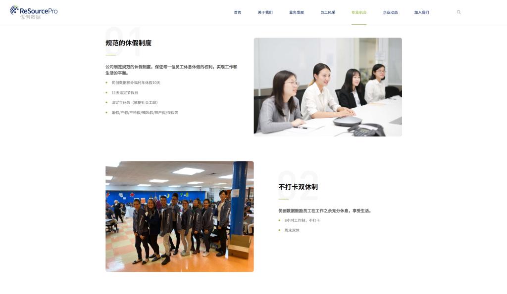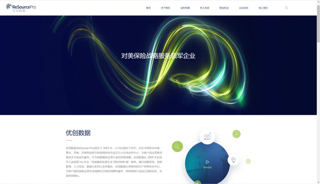 优创数据(ReSourcePro)创立于2003年。公司总部位于纽约,并在中国青岛、青岛黄岛、济南、印度班加罗尔和美国林肯设立全球业务中心,为客户的运营需求提供全天候业务服务。 截止2022年,优创数据在全球已拥有超过7,000名员工,为来自美国、加拿大和英国的超过1000家保险企业提供后台运营解决方案及服务。在过去的十余年,优创数据保持年均25-30%的业务增长率,客户留存率则高达95%以上。随着公司快速发展,优创数据已成为中国境内对美保险战略服务先进企业。优创数据致力于为欧美保险行业提供后台运营解决方案和服务,主要覆盖战略咨询、流程管理、人力培训、数据分析四大业务模块,凭借生产效率优化平台,为客户提供涵盖运营生命周期全过程的战略性服务,帮助保险行业进行流程优化,实现业务增长。优创数据致力于为欧美保险行业提供后台运营解决方案和服务,主要覆盖战略咨询、流程管理、人力培训、数据分析四大业务模块,凭借生产效率优化平台,为客户提供涵盖运营生命周期全过程的战略性服务,帮助保险行业进行流程优化,实现业务增长。