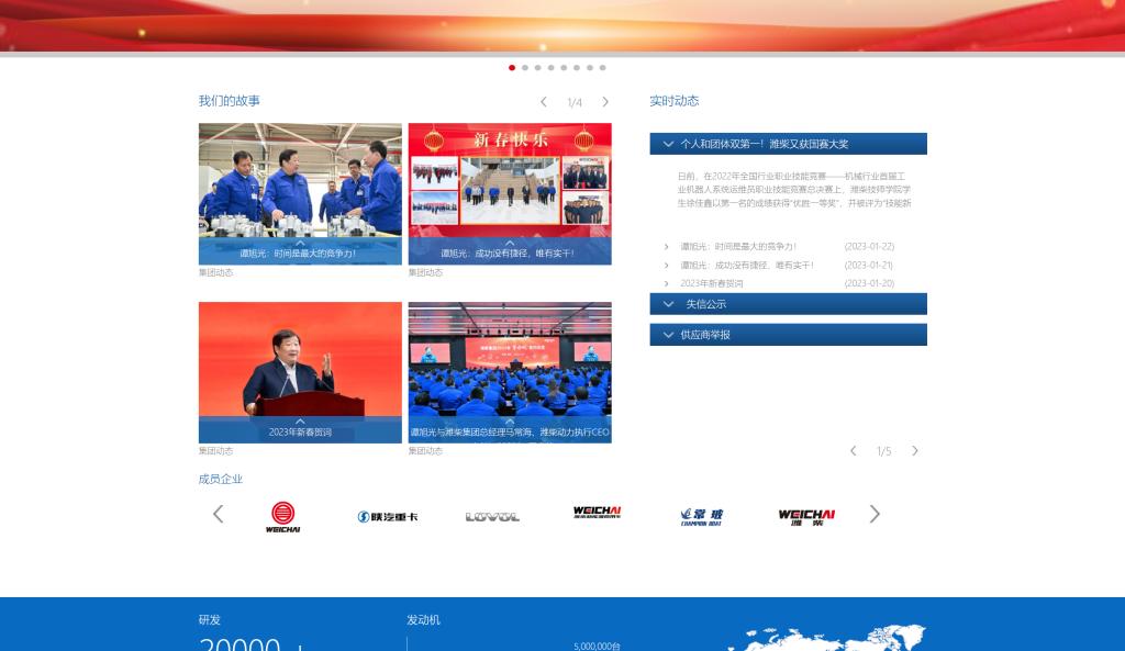 潍柴雷沃重工股份有限公司是全球知名的机械装备制造企业,致力于通过工业互联网技术实现智能制造、智能管理、智能服务,为全球现代农业生产、城市生活建设和资源产业提供互联、高效、可靠的整体解决方案。目前,约有员工1.3万人,业务遍及全球120多个国家和地区。 潍柴雷沃重工业务范围涵盖工程机械、农业装备、车辆、动力科技、金融科技以及网络科技领域,拥有完善的核心零部件产业链。创新并坚持“全球研发、全球制造与分销”的发展模式,在海外多个国家设有研发中心、制造基地及营销服务网络。 在客户服务方面,潍柴雷沃重工秉承“全心为你”的服务理念,为客户创造全方位、互动式、一站式的服务体验,并不断拓展客户价值增值的新领域。 面向未来,潍柴雷沃重工将持续加快全球化发展步伐,搭建并完善全球化运营管控体系。秉承诚信尊重、创新激情、专业团队的核心价值观,始终坚持以客户为中心,用高品质的产品与服务回馈全球客户,成为世界非公路行走机械装备品牌。 潍柴控股集团有限公司(以下简称潍柴集团)创建于1946年,全球员工10万人,2021年营业收入超过3000亿元,名列中国企业500强第86位,中国制造业500强第31位。潍柴集团是中国领先、在全球具有重要影响力的工业装备跨国集团,拥有动力系统、商用车、农业装备、工程机械、智慧物流、海洋交通装备等业务板块,分子公司遍及欧洲、北美、亚洲等地区,产品远销110多个国家和地区。旗下拥有潍柴动力(2338.HK;000338.SZ)、潍柴重机(000880.SZ)、亚星客车(600213.SH)、德国凯傲(KGX.F)、意大利法拉帝(9638.HK)等海内外8家上市公司、10支股票。潍柴高度重视科技创新,拥有内燃机与动力系统全国重点实验室、国家燃料电池技术创新中心、国家内燃机产品质量检验检测中心、国家内燃机产业计量测试中心、国家商用汽车动力系统总成工程技术研究中心、国家工业设计中心、国家认定企业技术中心、国家专业化众创空间等国家级研发平台,设有“博士后工作站”等研究基地,建有国家智能制造示范基地。在中国潍坊、上海、西安、重庆、扬州等地建立研发中心,并在全球多地设立前沿技术创新中心,搭建起了全球协同研发平台,确保企业技术水平始终紧跟世界前沿。潍柴坚持国际化发展战略,在全球打造了协同并进的产业布局,位列2022年中国跨国公司100大第18位,跨国指数39.06%,成为中国装备制造业在全球的一张重要名片。2004年,潍柴动力在香港上市,成为我国内燃机行业首家在港上市公司,一步打通资本国际化道路。2005年,潍柴动力并购湘火炬汽车集团,打造了重卡黄金产业链(潍柴发动机+法士特变速器+汉德车桥+陕汽重卡),之后通过换股吸收合并湘火炬,由H股回归A股,开创了资本市场上的“潍柴模式”。2009年以来,潍柴先后并购具有百年历史的法国博杜安发动机公司,战略重组豪华游艇制造企业意大利法拉帝集团,与工业叉车及服务提供商德国凯傲集团战略合作,并购德国林德液压并实现国产化落地,支持凯傲集团收购自动化物流提供商美国德马泰克公司,战略投资可替代燃料动力系统提供商美国PSI公司、固态氧化物燃料电池供应商英国锡里斯公司和氢燃料电池提供商加拿大巴拉德公司,战略重组德国欧德思公司、奥地利威迪斯公司、瑞士飞速燃料电池空压机公司,实现了战略业务覆盖全球、均衡发展。同时,通过技术输出、产能合作等方式,潍柴在印度等地建立生产基地,实现了本土化制造的落地。2021年1月,潍柴战略重组雷沃重工,加快推进我国农业机械化、智能化,引领中国农业装备迈向高端。在快速发展的同时,潍柴一直模范履行社会责任,积极投身公益活动和慈善事业,在志愿服务、扶贫救灾、捐资助学等方面作出积极贡献,树立了良好形象。潍柴大力倡导节能减排、绿色生产,持续推动行业转型升级,与产业链上下游互利共赢发展,与社会各界共享发展成果。潍柴的快速发展得到了社会各界的充分肯定,先后荣获全国文明单位、全国先进基层党组织、自主创新典型企业、国家创新型企业、中国质量奖、中国商标金奖•商标创新奖、中国工业大奖、全国企业文化示范基地、全国质量奖等荣誉称号,荣获国家级科技奖励8项,其中国家科技进步一等奖2项。潍柴以“绿色动力、国际潍柴”为使命,以客户满意为宗旨,形成了独具特色的企业文化。潍柴的战略目标是:2025年传统业务要稳居世界一流水平,2030年新能源业务要引领全球行业发展;2025年前实现收入1000亿美元,2030年前实现收入1万亿人民币;各主业核心业务进入全球前三,稳居世界500强前150位,打造受人尊敬的智能化工业装备跨国集团。