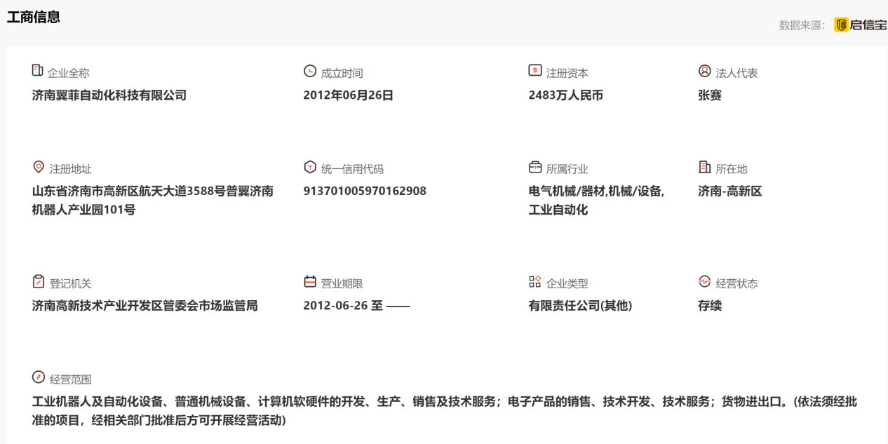 公司地址:山东省济南市高新区航天大道3588号普翼济南机器人产业园101号