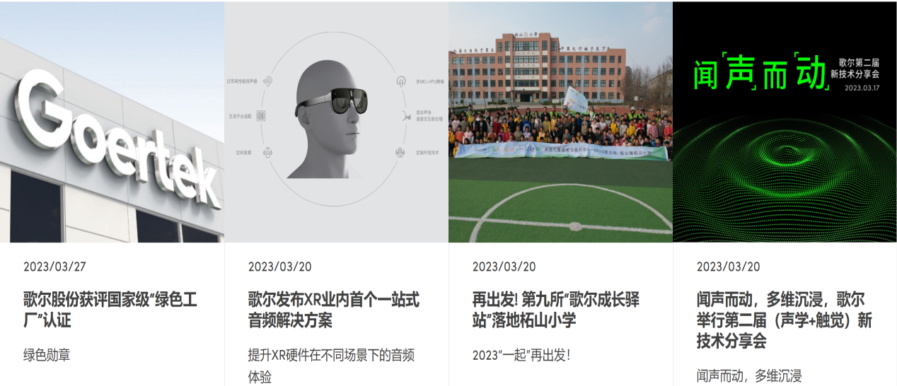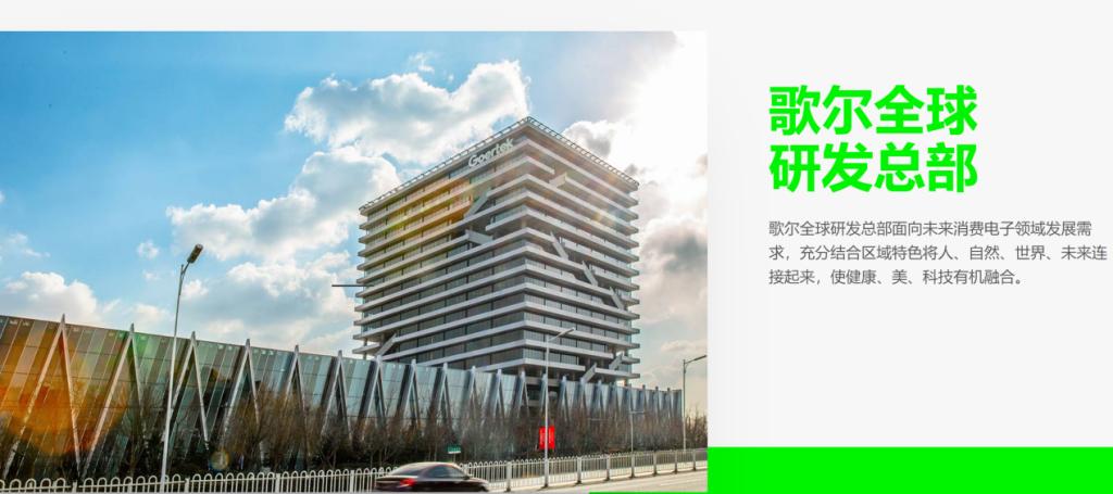 歌尔股份有限公司成立于2001年6月,总部位于山东省潍坊市,2008年5月在深交所上市,是全球布局的科技创新型企业,主要从事声光电精密零组件及精密结构件、智能整机、高端装备的研发、制造和销售,目前已在多个领域建立了综合竞争力。