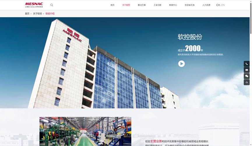 软控股份有限公司成立于2000年,是依托青岛科技大学发展起来的国际化高科技企业集团。软控主营业务和技术优势集中在橡胶机械领域,同时也涉足节能环保、物联网、新材料和新能源等领域。软控2006年在深圳证券交易所成功上市。多年来,软控搭建了多个行业级的综合技术研发平台,先后承建了国家橡胶与轮胎工程技术研究中心、轮胎先进装备与关键材料国家工程实验室以及数字化橡胶轮胎装备国际联合研究中心,积极推动橡胶工业的升级。软控股份包括橡机智造、新材料、战略新兴三大业务板块。橡机智造业务致力于橡胶智能装备、应用软件的研发与创新,为行业企业提供软硬结合、管控一体的智能化整体解决方案。 新材料业务主要涉及化工及橡胶新材料领域。战略新兴业务主要涉及物联网、环保、新能源等领域。经过多年发展,软控股份搭建了以中国、美国、斯洛伐克为中心的全球研发体系,是国家创新型企业、国家技术创新示范企业、国家工业品牌示范企业、中国十大创新软件企业,拥有国家认定企业技术中心、博士后科研工作站,拥有专利近1000项,获得国家科技进步奖1项、省部级科技奖励29项,起草国际标准4项、国家及行业标准82项,承担国家各部委科技项目近60项。 不仅如此,软控股份近年在智能制造领域进展迅速,2016年起实施了多个轮胎智能制造示范工厂,发起了中国轮胎智能制造与标准化联盟,启用了面向全球的轮胎智能制造体验中心,入选了国家智能制造系统解决方案供应商目录。