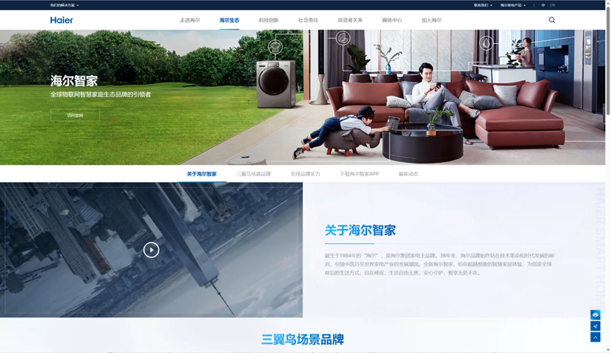 诞生于1984年的“海尔”,是海尔集团家电主品牌。36年来,海尔品牌始终站在技术革命和时代发展的前列,引领中国乃至世界家电产业的发展潮流。全新海尔智家,给你超越想象的智慧家居体验,为创造全球前沿的生活方式;自在感应,生活自由无界,安心守护,智享无处不在。