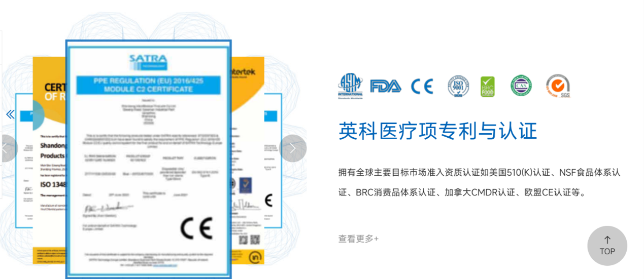 英科医疗是一家致力于医疗器械耗材研发、生产、营销的高科技制造企业,于2017年7月在深圳证券交易所创业板.上市,是中国品牌500强,中国制造业企业500强,2021年.上市公司百强企业。目前公司共有10000+名员工,公司及子公司拥有专利119项。