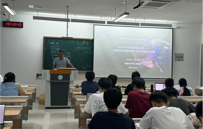2022年6月23日,在淄博校区理工东A312教室,张兴波副教授面相2021级物联网工程(校企)和2021级网联网工程专业作了题为“数字时代的黄金机遇——物联网与其他新兴技术融合应用”的学术报告。