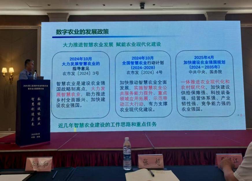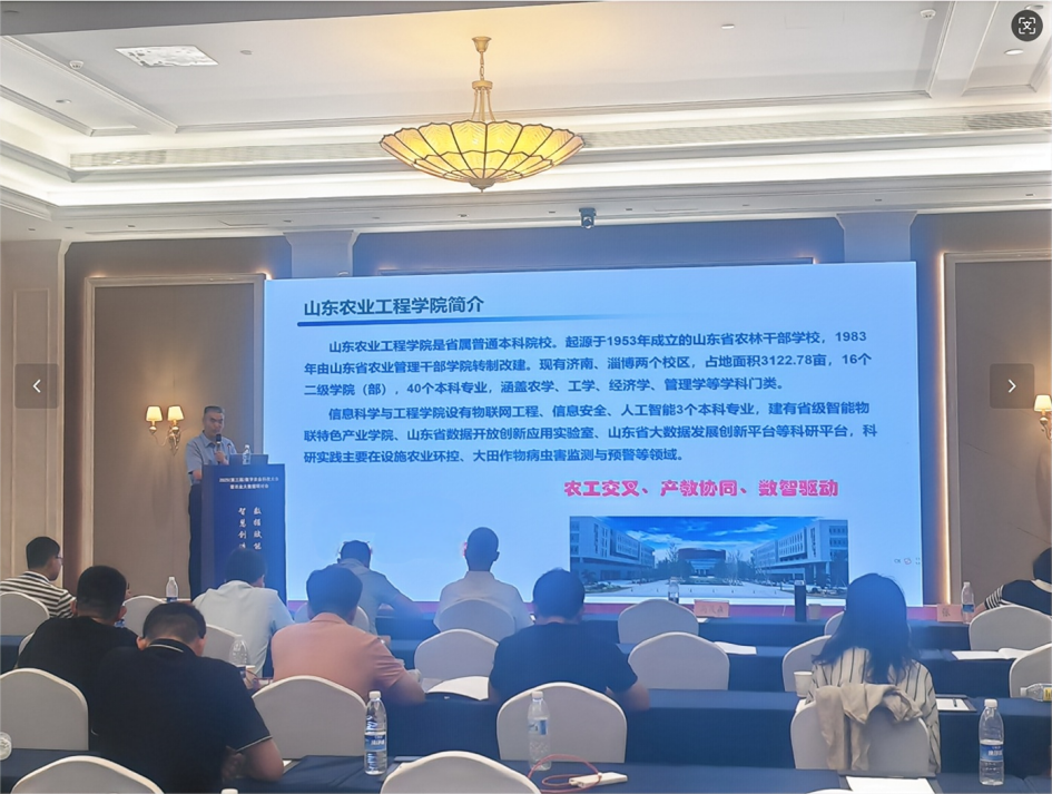 2025年8月30日,2025(第三届)数字农业科技大会暨农业大数据研讨会在济南雪野湖国际会议中心召开。会议以“数据赋能农业,智慧创造未来”为主题,赵春江院士、陈学庚院士、罗锡文院士、农业农村部信息中心李韶民副主任等专家、学者与主管部门领导参加活动。信息科学与工程学院作为会议协办单位,杨现德院长以“农工交叉、产教协同、数智驱动的物联网工程专业人才培养模式的构建与实践”为题进行了汇报。