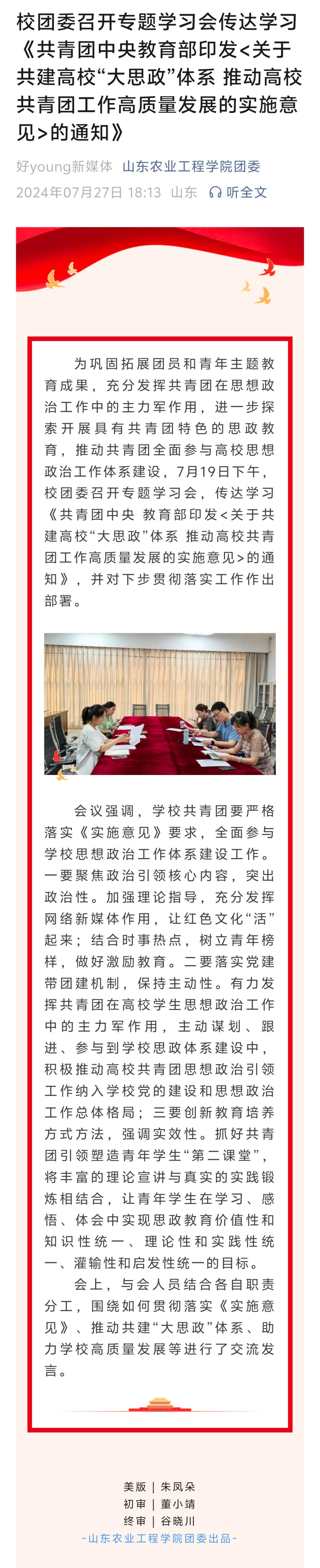 校团委召开专题学习会传达学习《共青团中央教育部印发关于共建高校大思政体系 推动高校共青团工作高质量发展的实施意见的通知》