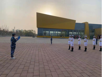 担任升旗仪式的是必赢齐河校区军事示范团-国旗护卫队。全体成员注视着五星红旗在庄严的国歌声中缓缓升起。