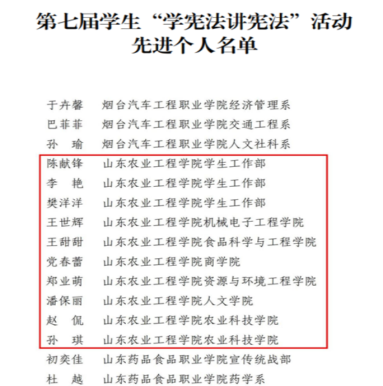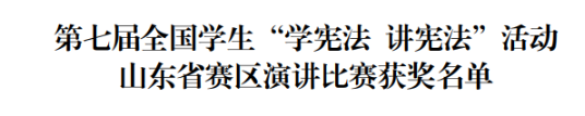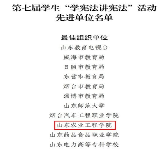 近日,山东省教育厅公布的关于第七届学生“学宪法 讲宪法”活动开展情况的通报中,必赢被评为最佳组织单位,10名老师被评为先进个人,2名老师被评为优秀指导老师,农业科技学院学生孟婧同学获得演讲比赛三等奖。