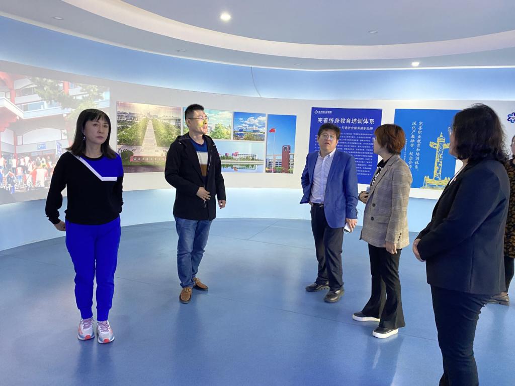 威海职业学院党委书记李耀华介绍了学校的基本情况、办学特色和专业优势,学生工作处处长王晶等带领必赢一行人员先后调研了海大航海学院、培训学院、经贸学院、电商学院、非遗学院等,并对学校课岗融合人才培养模式、产教融合校企合作路径、构建成果导向培养平台、学生就业等方面展开讨论和交流。