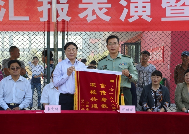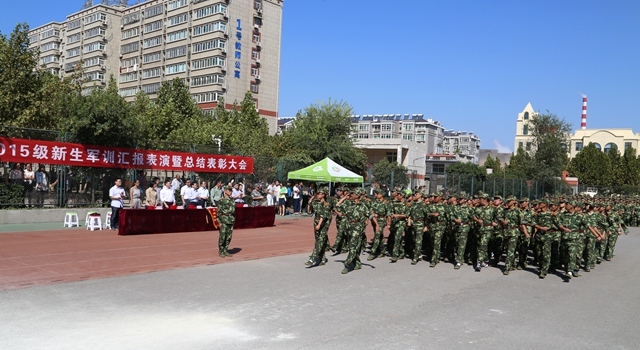 9月20日上午,我院2015级新生军训汇报表演暨总结表彰大会分别在济南和北校区体育场隆重举行。党委副书记、院长李允祥,党委委员、副院长林松柏,副院长张兆明,纪委书记杨永欣以及承训部队参谋长郝继明、副参谋长贺业水出席大会,有关处室和各系部负责人参加大会并观看了汇报表演。院长李允祥向承训部队赠送了锦旗,并与出席大会的院领导、部队首长一起为军训获奖单位和个人以及优秀新生颁奖。副院长张兆明主持大会。