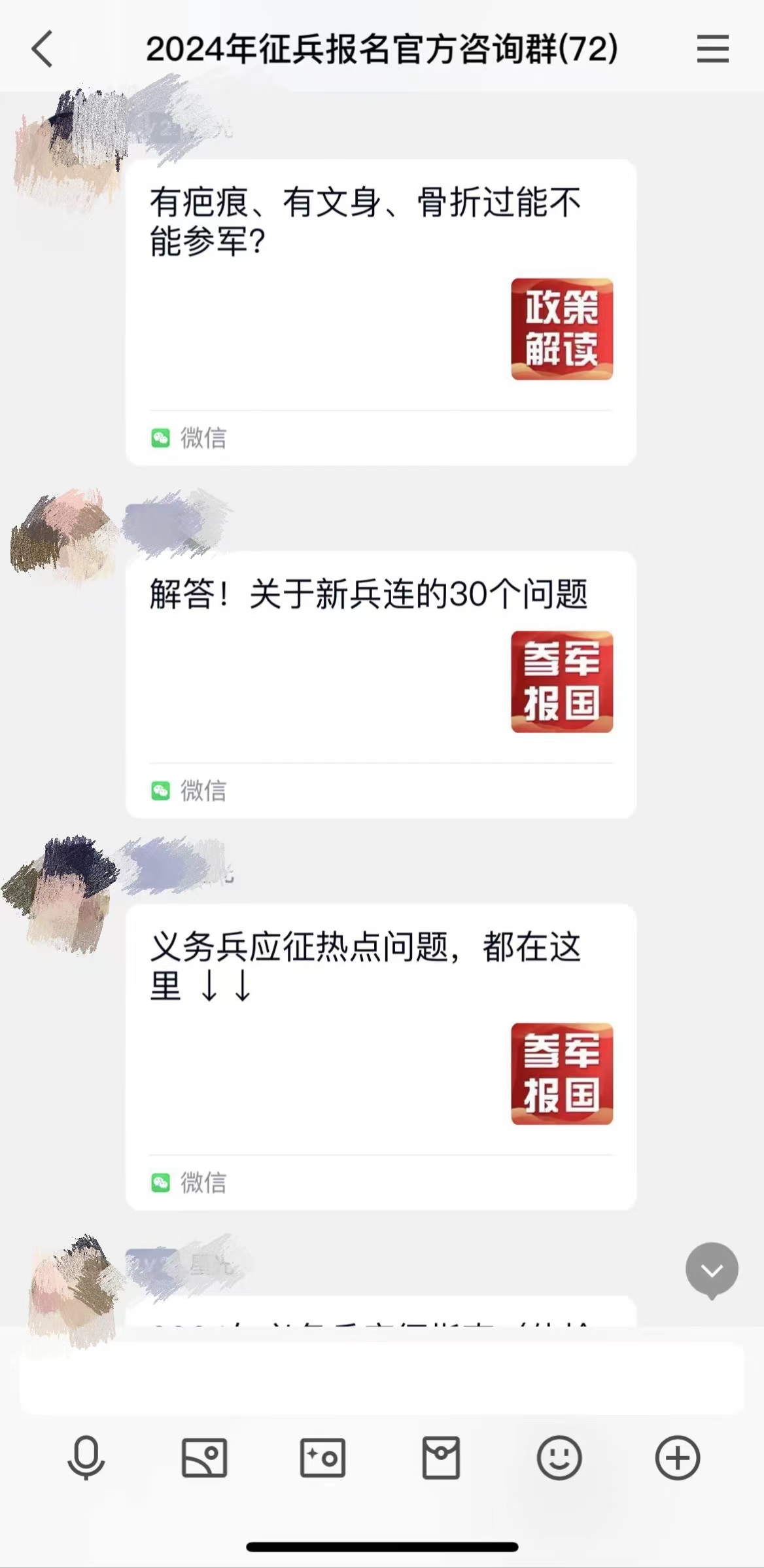 学校通过新媒体平台加大征兵宣传力度,利用微信公众号、抖音短视频等平台精准推送功能,聚焦学生关注的问题,增加宣传推送频次,扩大征兵宣传覆盖面、影响力;建立“2024年征兵政策咨询”QQ群,线上开展政策发布、问题解答等活动,方便校内外学生及时掌握2024年的征兵入伍政策,对促进学生入伍报名起到了至关重要的作用。