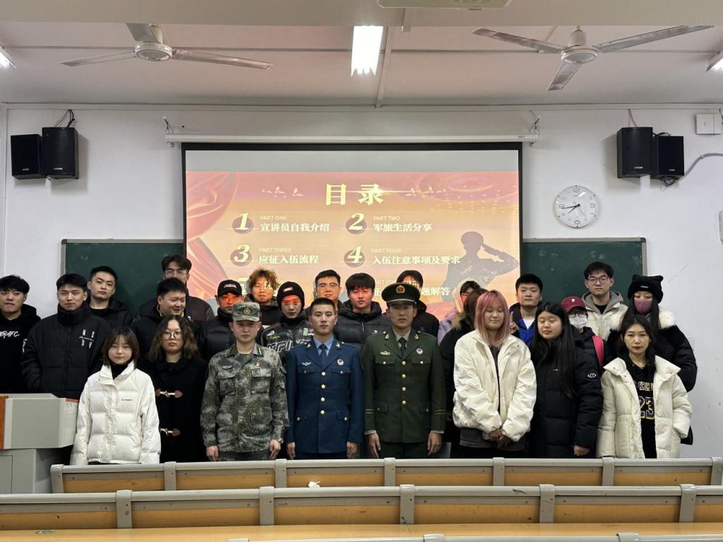 青春有梦不遗憾,热血报国正当时。为充分调动广大适龄青年学子参军入伍积极性,437ccm必赢国际官网军事示范团在2024年春季征兵报名前期,积极开展征兵宣传“五进”活动。