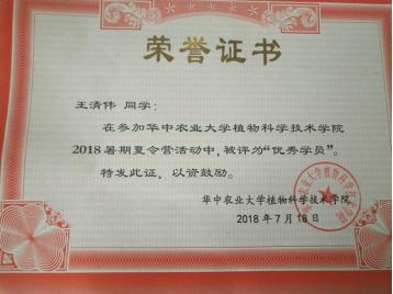 多次获得国家励志奖学金、校一等奖学金及优秀学生、优秀团员等荣誉称号,并于2019年度硕士学位研究生入学资格考试中以初试成绩384分南京农业大学录取。
