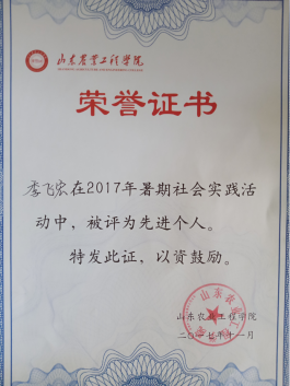 他,来自临沂市一个贫穷的小乡村,自幼便励志要用自己的双手改变家乡的现状;学校中的他,自强不息,拼搏赶超,他的身影遍布实验室、自习室、图书馆;节假日的他,积极参加各类兼职活动为家庭减负;假期中的他,热心公益,进入社区为老人们量血压血糖、普及营养健康知识;锲而不舍,金石可镂,他的付出也获得了优异的成绩:GPA得分3.8分,获得外观设计专利一项。