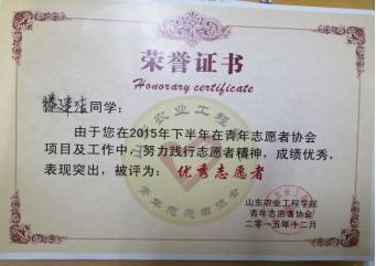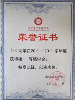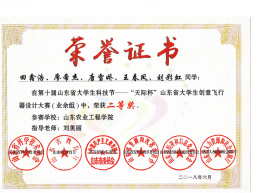 他立志扎根农业,为科技献身。他勇攀高峰,不断超越自己!他两次参加国家级大学生创新创业训练项目及省级科技创新项目,已在国家核心期刊发表论文两篇,成功申请国家实用新型专利5项,曾获“第五届山东省科技创新大赛一等奖”,目前仍有学术成果投稿中。学业上,他严格要求自己,连续四年综合测评成绩班级第一,连续三年荣获国家励志奖学金、校二等奖学金以及校长奖学金。