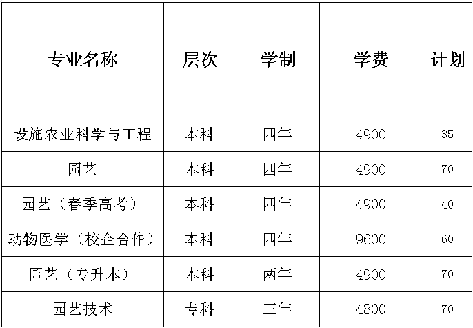 农业科技学院2020年夏季高考本科招生计划(招生代码:E439)